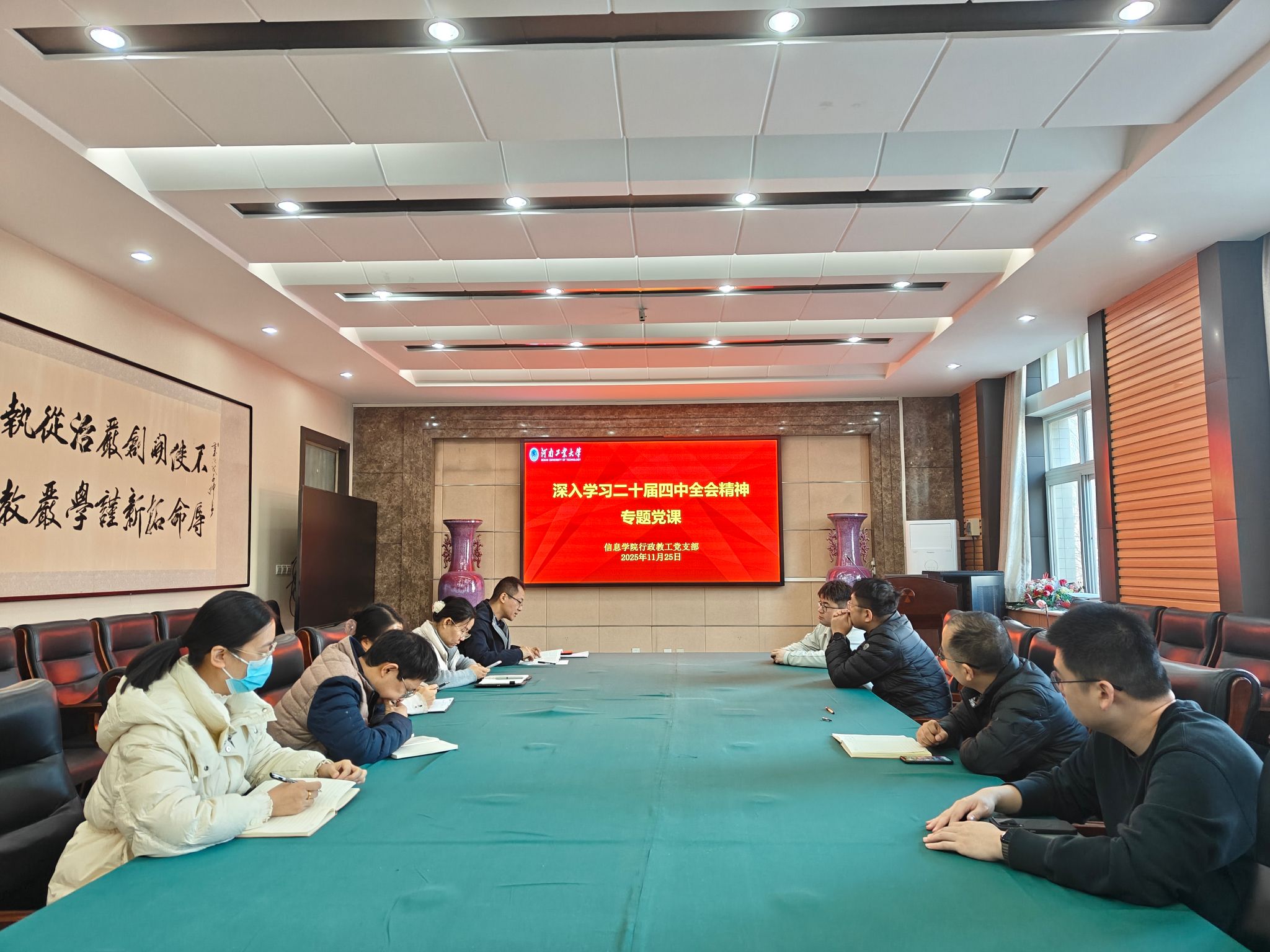 行政教工党支部在6225会议室举行“深入学习二十届四中全会精神专题党课”学习活动。本次党课以“紧跟时代浪潮,聚焦AI赋能”为核心主题,由支部书记吕宗旺主讲,全体行政人员及支部党员参加学习。活动通过专题授课、案例解析、交流研讨等环节,深入解读全会精神中关于人工智能发展的重要论述,切实推动理论学习与行政工作实践深度融合。