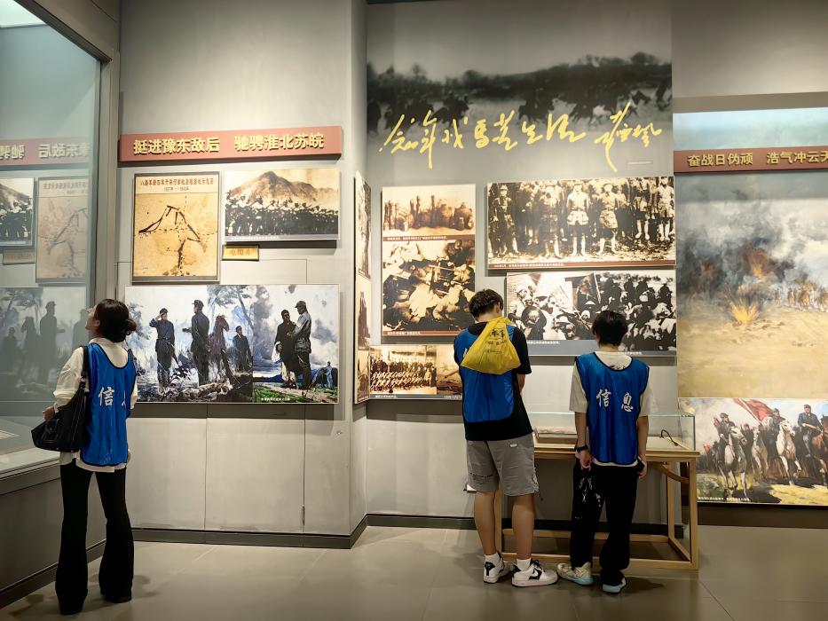 活动首日,队员们来到中原英烈纪念馆。在序厅,“中原英烈永垂不朽”的浮雕墙带来强烈的视觉冲击和心灵震撼。随后,大家在一楼依次参观“风起云涌——工人运动的开展和大革命浪潮展厅”“星火燎原——土地革命战争厅”。丰富的历史图片、珍贵的文物资料,生动展现了中原地区早期革命的艰难发展历程,先辈们坚定的革命信念令人动容。下午,“砥柱中原——抗日战争厅”“逐鹿中原——解放战争厅”里,中原地区在抗战和解放战争中的重要战役、英雄事迹被一一呈现,中原人民在抵御外敌、争取解放时的英勇无畏精神深深感染着每一个人。