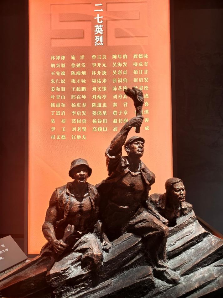 8月27日上午实践团前往二七纪念堂。作为京汉铁路总工会成立大会旧址,纪念堂内复原的历史场景与沉浸式展览,生动再现了工人运动波澜壮阔的历程。学子们通过情景剧演绎、互动问答等形式,深入理解“团结斗争、敢于胜利”的革命精神内涵。