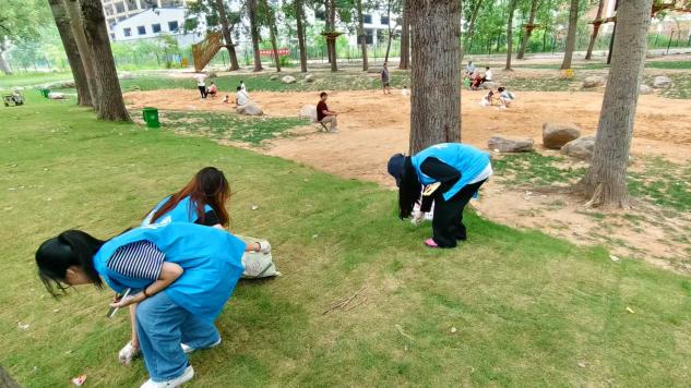 在清扫过程中,队员们不仅清理了肉眼可见的垃圾,还特别注重对一些卫生死角,如灌木丛深处、长椅缝隙、广场砖缝等容易积存杂物的地方进行了彻底清理。他们发扬不怕脏、不怕累的精神,或徒手捡拾,或用工具夹取,不放过任何一个角落。团队负责人表示:"'三下乡'社会实践的精神内核就是深入基层、服务群众。选择莲花公园,是因为它是市民休闲的重要场所,我们希望用一次弯腰、一次拾取的行动,换来看得见的整洁,也唤起更多人的环保意识。"