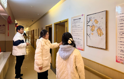 院旗在服务中心门前合影留念,鲜艳的院旗见证着青春志愿的初心。首日,在工作人员引导下,志愿者实地走访老人居所、活动大厅及康复区域,细致了解中心运营模式与老人生活需求,工作人员结合案例讲解老年护理常识与应急处理技能,志愿者认真记录要点,为后续服务筑牢基础。