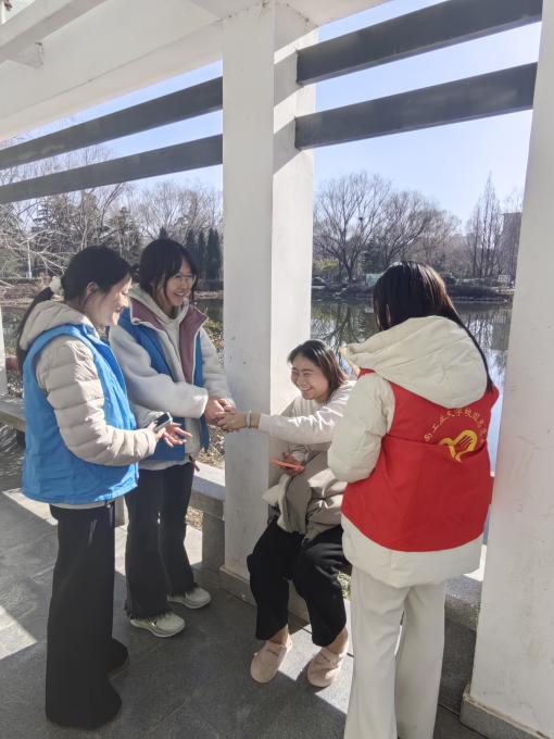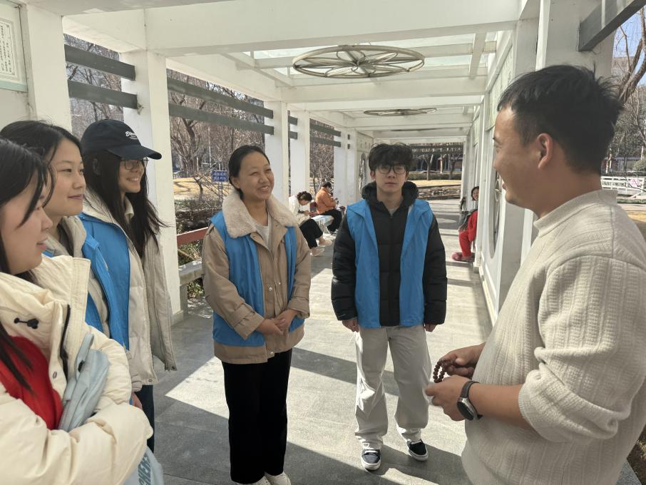 此外,团队结合莲花公园“以莲为媒、生态惠民”的历史文化定位,在公园核心景观区设置宣传展板,通过图文并茂的形式向游客介绍公园从城郊荒地到生态休闲地的发展历程、本土水生植物文化及冬季绿植养护小知识。成员们耐心为游客讲解展板内容,解答关于绿植越冬养护、文明游园的相关疑问,累计服务游客百余人次,有效提升了游客的生态保护意识与文明旅游素养。