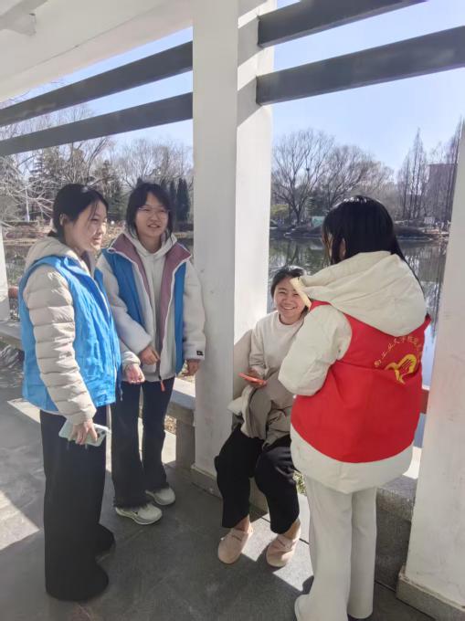 在环境整治环节,团队成员携带垃圾夹、水桶、抹布等清洁工具,对公园内的垃圾死角、水域漂浮物及步道两侧的烟头、塑料杂物等进行集中清理。针对公园部分绿植枯枝落叶堆积、公共围栏污渍等问题,成员们分工协作,修剪干枯枝叶、擦拭座椅与宣传栏,累计清理垃圾3袋,擦拭座椅15组、宣传栏8块。过程中,团队还向过往游客发放《文明旅游倡议书》,结合调研发现的案例讲解生态保护的重要性,引导游客自觉遵守公园规定,爱护公共环境。有游客表示:“看到大学生们主动清理环境、宣传文明旅游,我们也更要注意自身行为,共同守护家门口的美景。”