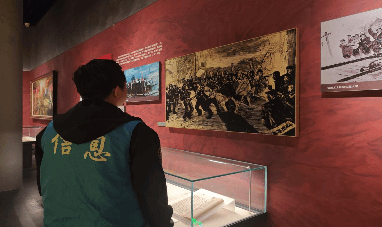 在庄严肃穆的纪念堂内,团队成员系统参观了千秋二七主题展览。展览以丰富的史料文献、实物展陈与多媒体技术,全景再现了京汉铁路工人大罢工的壮阔历程。队员们跟随历史脉络,从早期铁路工人的生存状况,到工会组织的建立,再到罢工运动的澎湃发展,一步步深入那段风起云涌的岁月。